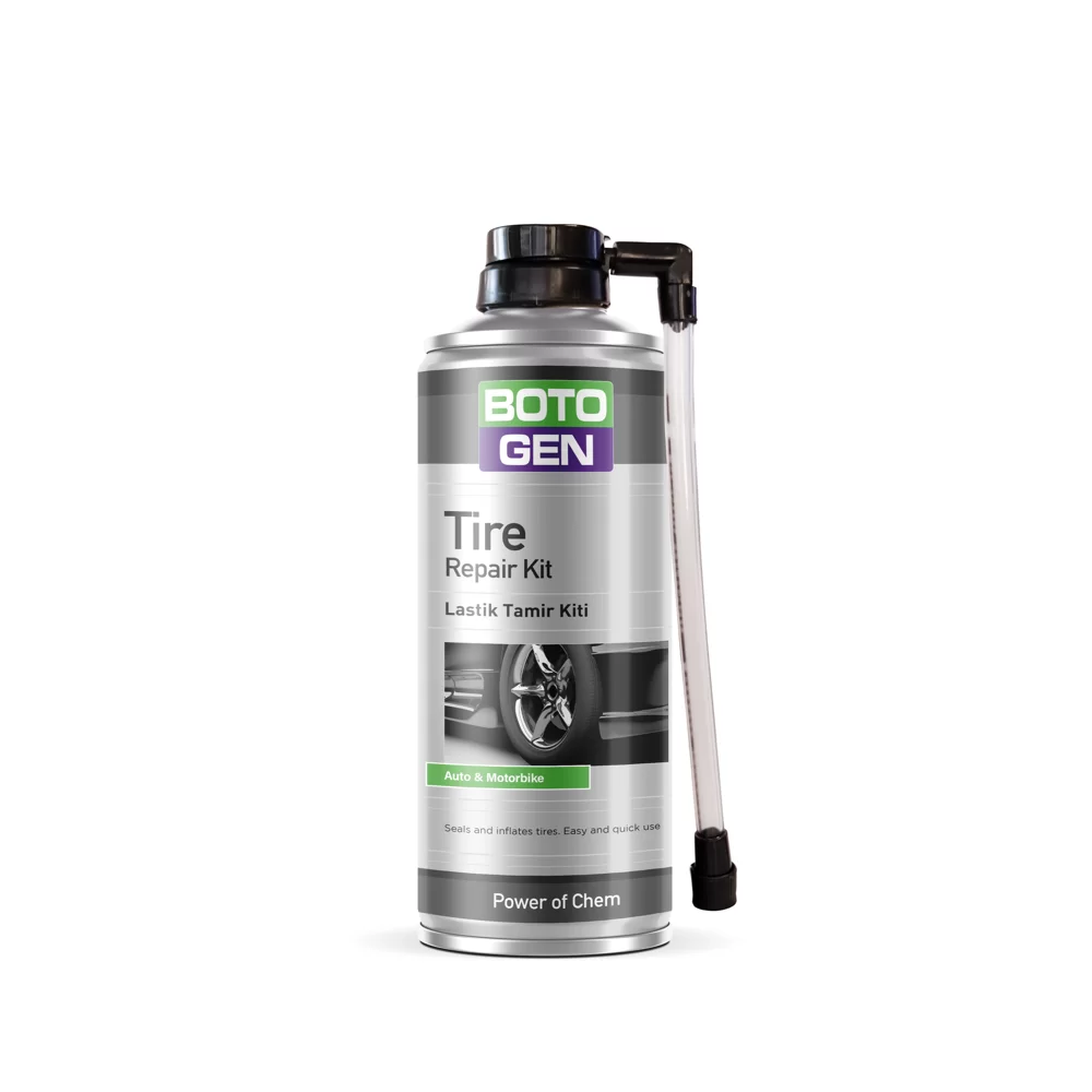 Tüm binek otomobil, motosiklet, bisiklet, hafif ticari araç ya da karavanlarda kullanılabilir. Tüm marka ve model otomobillerde ve jant tiplerinde, motosiklet ve motorlar için de kullanılacak şekilde tasarlanmış ve üretilmiştir. Özellikleri Lastik Tamir Kiti acil durumlar için lastik patlamalarını tamir edici ve şişirici özellikle üretilmiştir. İçerisinde bulunan ve hava ile temas ettiğinde kauçuklaşan özel formülü ile patlayan lastiğinizi tamir eder ve 20 psi’a kadar şişirebilir. Lastiğe zarar vermez. Jantlardan kaynaklanan büyük yamuklukları ve lastikteki büyük yarıkları tamir etmez.